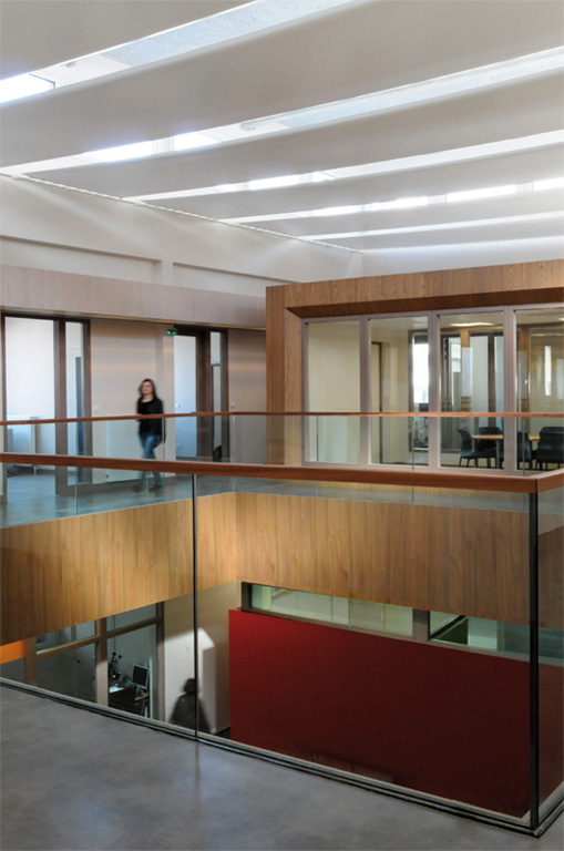 Le projet unifie les deux architectures en présence pour constituer un seul équipement, avec une seule entrée, et des accueils communs situés le long d’une verrière créée qui relie et distribue les différents services.