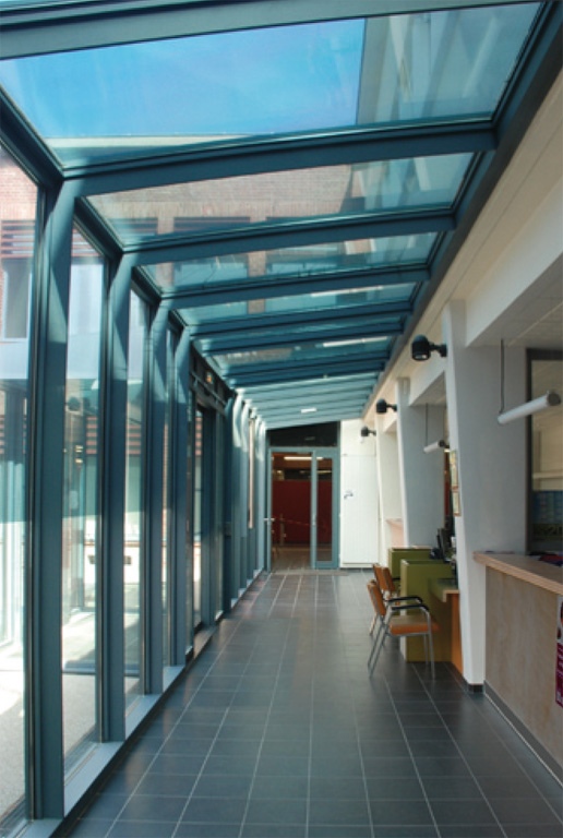 La restructuration de l’ancien bâtiment a été l’occasion de sa mise en valeur architecturale, notamment par la création d’un atrium au cœur du bâtiment, permettant l’éclairage naturel des espaces d’attentes du public situés au rez de chaussée.